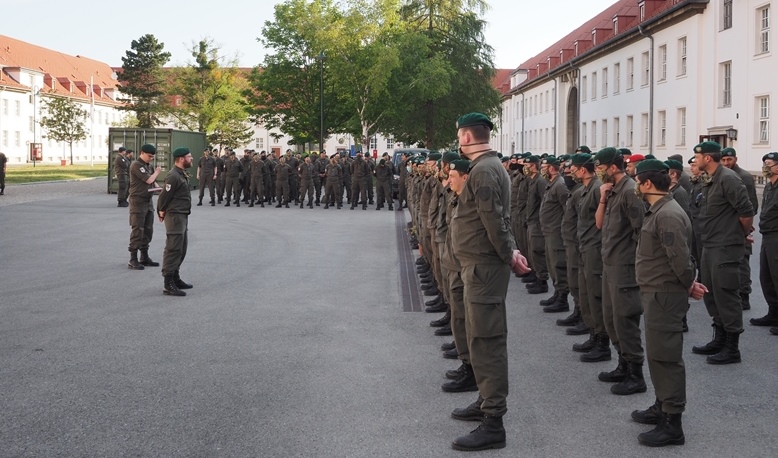 4) Die angetretenen Milizsoldatinnen und -soldaten beim abschließenden Festakt bei „Jägerwetter“ in der Maria Theresien-Kaserne